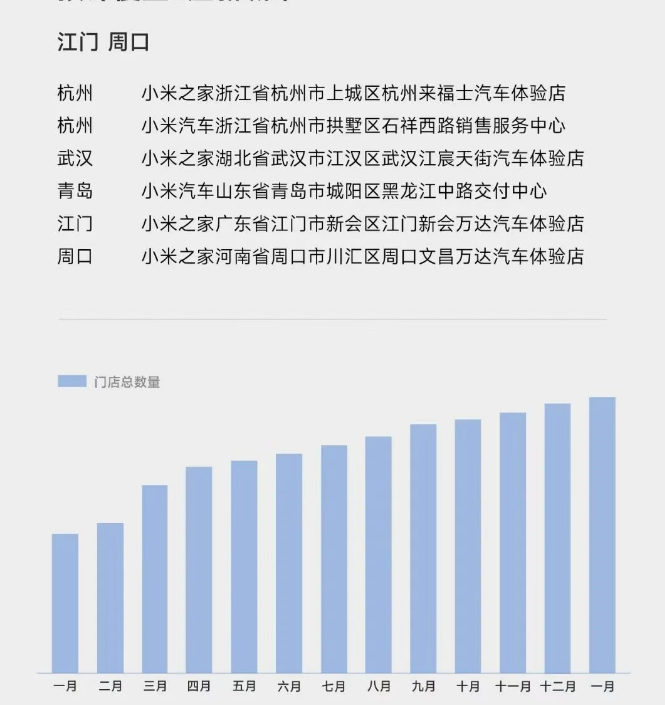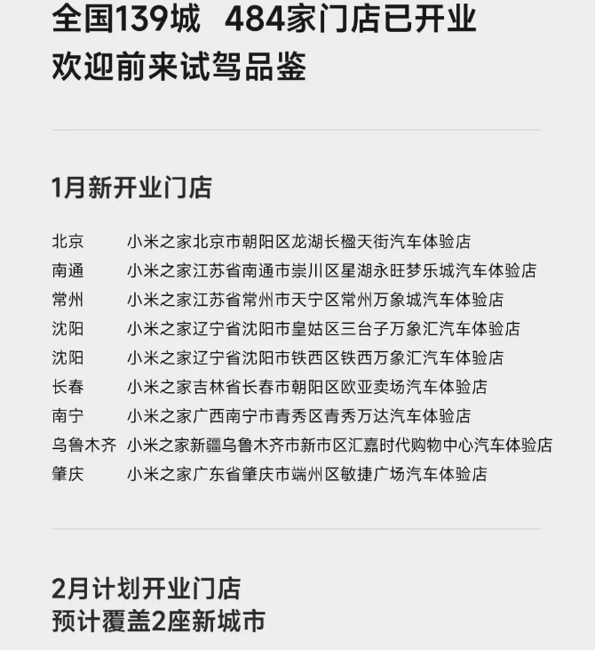 New progress in Xiaomi – car store openings: 9 new stores were added in January, and 6 new stores are planned to be added in February.